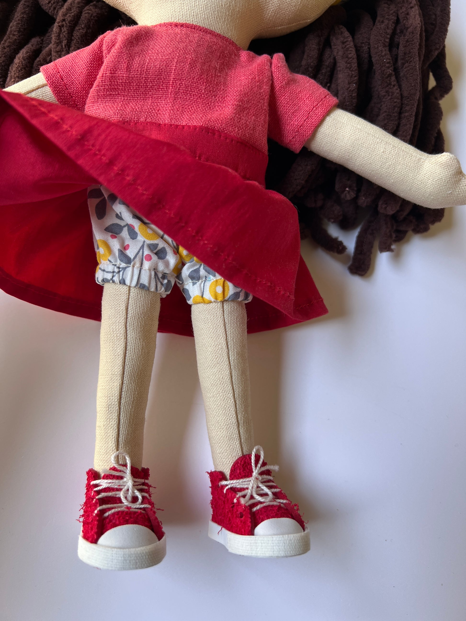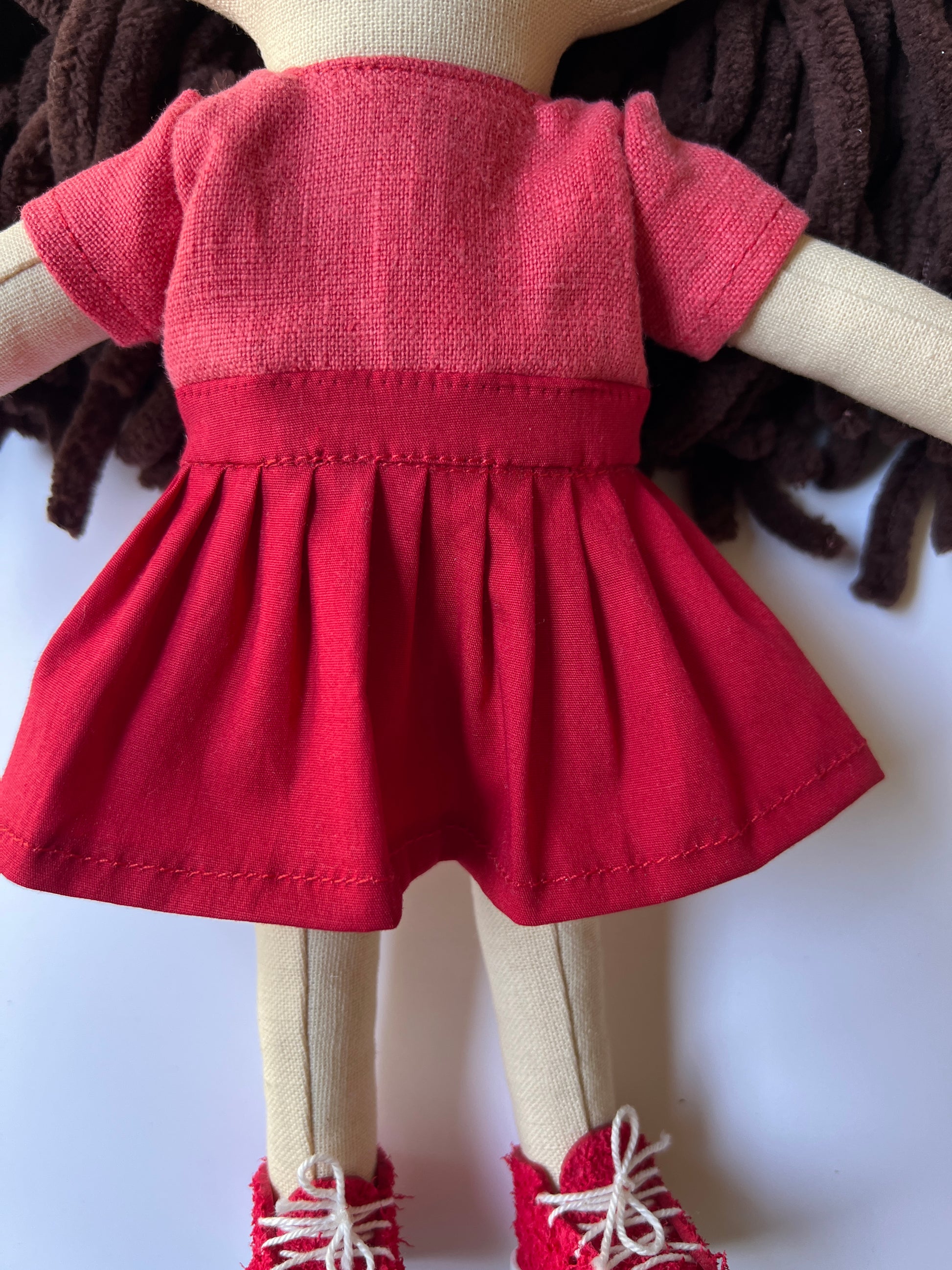 This doll is handmade with care and meant for gentle play, cuddles, and display. Each piece is unique and made in small batches.
